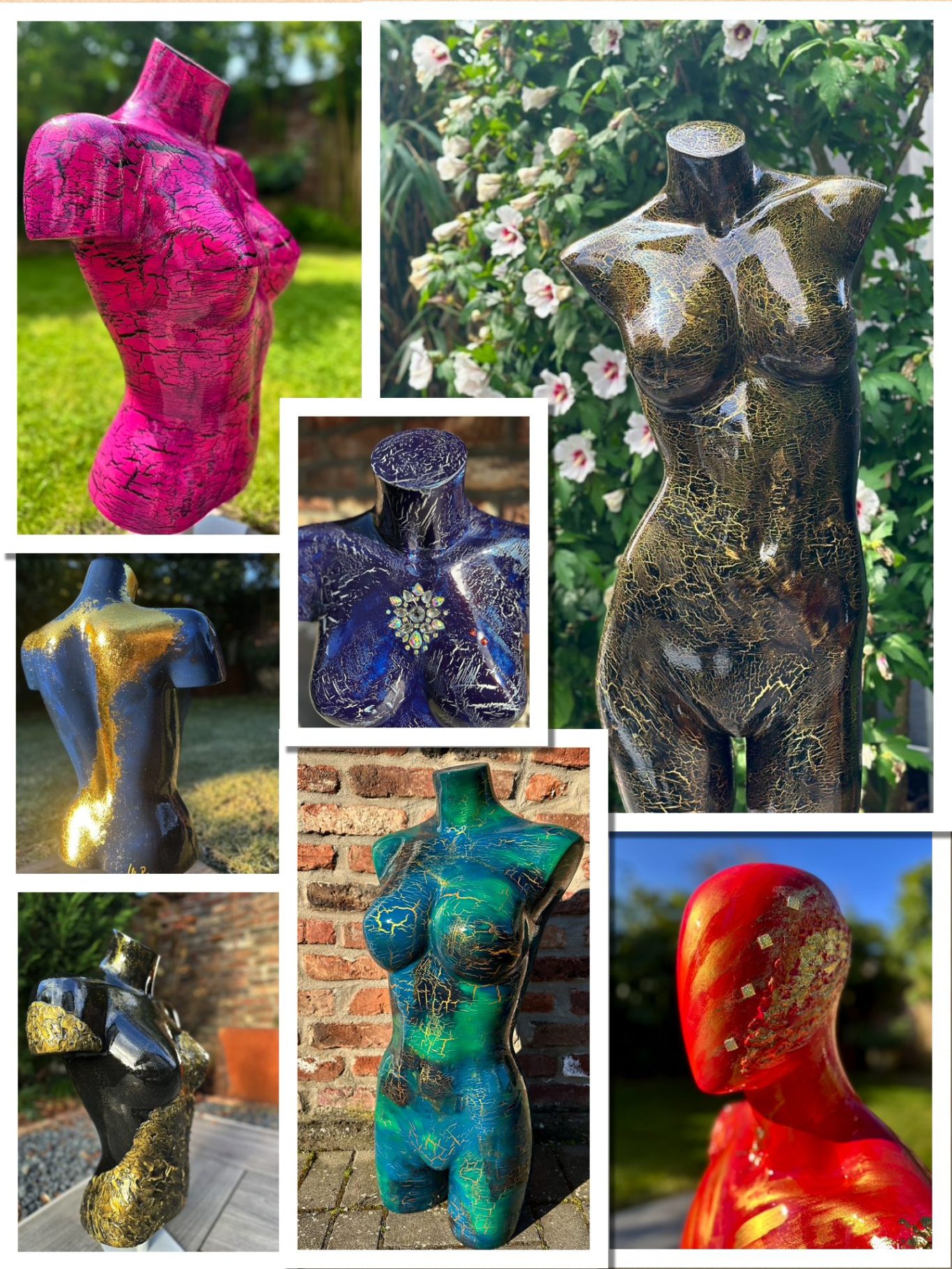 Meine Torsos werden mit einem hochglänzenden, wetterfesten Lack veredelt, der sie strahlen und lebendig wirken lässt.